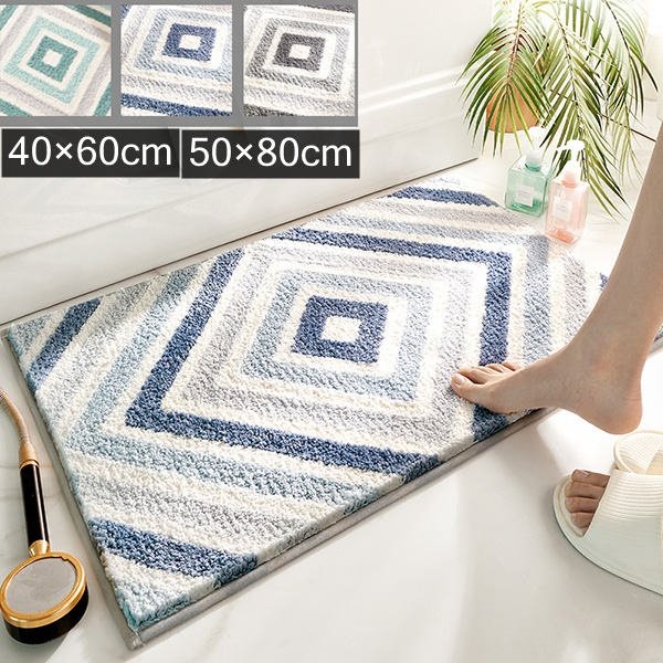 バスマット お風呂 マット 玄関マット 滑り止め 北欧風 ラグマット 滑らない ドアマット 洗える トイレ 洗面所 エントランス 速乾 抗菌 無地 屋内 室内 浴室 家庭用 ふわふわ お洒落 厚手 吸水 足ふきマット オールシーズン 40×60cm 50×80cm 青 緑 グレー d1333s1
