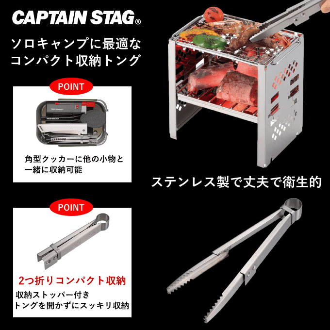 たためる ソロトングの詳細 品番 UG-3293 商品サイズ (約) 【組立サイズ】全長21cm 【収納サイズ】2.3×2×全長13.5cm 重量 (約) 700g 材質 ステンレス鋼 生産国 中国 キーワード 折りたたみ ソロ トング 折りたたみ式 ストッパー付き コンパクト 火ばさみ UG-3293 キャプテンスタッグ(CAPTAIN STAG) ソロキャンプ アウトドア キャンプ レジャー バーベキュー キャンプ飯 キャンプめし 一人用 焼肉 折り畳み