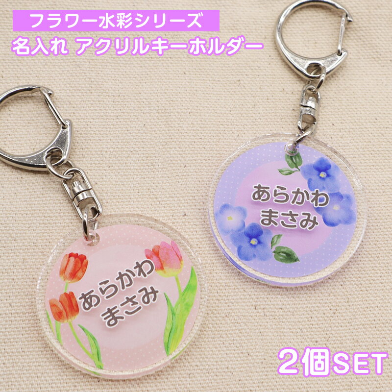 【名入れ】デザイン選べる 水彩フラワー柄 キーホルダー キッズ 子供 かわいい プレゼント 日本製 入園祝い 入学祝い プレゼント 保育園 幼稚園 新学期 名前 ギフト 出産祝い 卒園 記念 クリスマス 名前入り すみれ たんぽぽ ひまわり