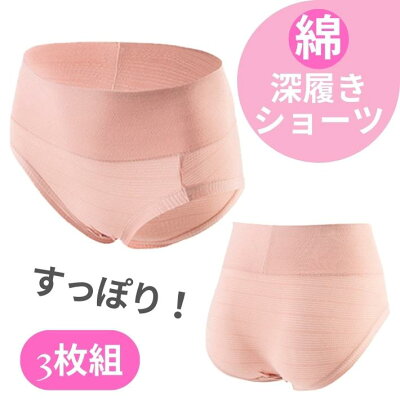 深履き ショーツ レディース ハイウエストショーツ 綿 100% インナーウェア お腹 押さえ 引き締め アンダーウェア 食い込まない 鼠径部 締め付けない 伸縮性 美尻 抗菌 女性 下着 肌着 プレゼント 3枚セット