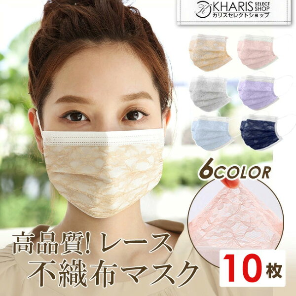 レースマスク 50枚入り 不織布マスク マスク レディース カラーマスク 使い捨て プリーツ 立体 四層構造 花柄レース おしゃれ 大人用 女性 血色マスク\ クーポンのご利用をお忘れなく! / 有効期間:8/18(木)18:00~9/2(金)17:59 【 レースマスク 10枚入り 】 レースがフェミニンな不織布マスク。