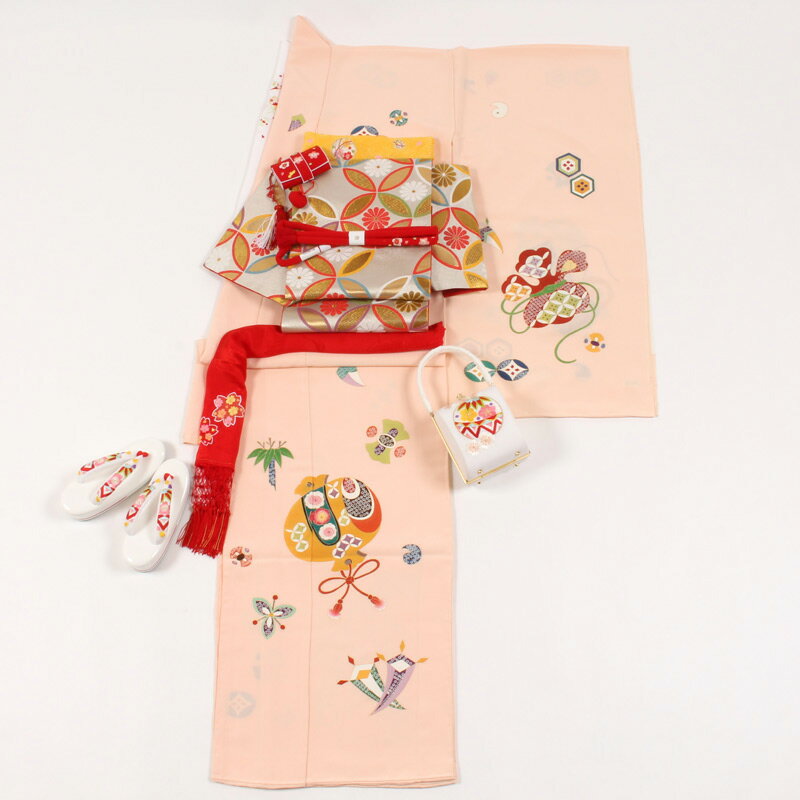 関連商品 7歳着物一覧 ■セット内容 1 ●京友禅四つ身振袖のお着物(国内手縫い仕立付・正絹胴裏・正絹八掛け) 2 ●ジュニア祝帯(帯のかがり仕立付) 3 ●正絹長襦袢(国内手縫い仕立付) 4 ●正絹箱迫セット(正絹丸ぐけ、箱迫、扇子) 5 ●正絹帯揚げ 6 ●正絹志古貴(抱え帯) 7 ●正絹草履バッグ(バッグ・草履) 8 ●正絹刺繍半衿 9 ●正絹重ね衿 10 ●きものスリップ 11 ●前板・帯枕セット 12 ●ストレッチ子供足袋 ※セットの小物については、在庫状況により、色や柄が多少変わる場合がございます。