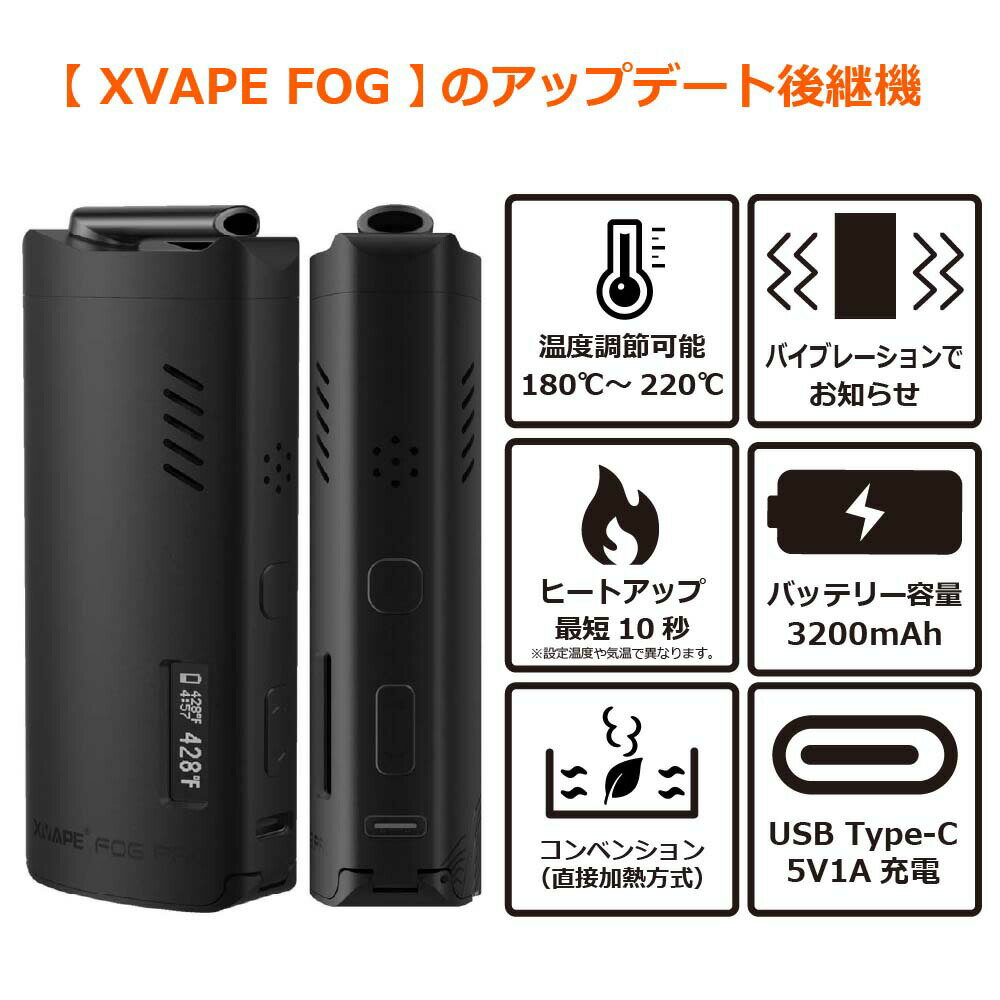 商品説明 XVAPE FOG PROは、「XVAPE FOG」「XVAPE FOG V2」から、 温度設定の精度強化、有機ELディスプレイ、ヴァイブレーションでのお知らせの進化、USB Type-Cでの充電など、 新しい機能を備えたのアップデート版です。