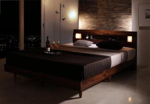 【ポイント20倍】モダンライト・コンセント付きすのこベッド Eleonora エレオノーラ 国産カバーポケットコイルマットレス付き クイーン 照明 クイーンベッド ベット ライト付き 宮棚付き ヘッドボード スマホ 携帯 充電 ディスプレイボード 背面化粧仕上げ すのこベット