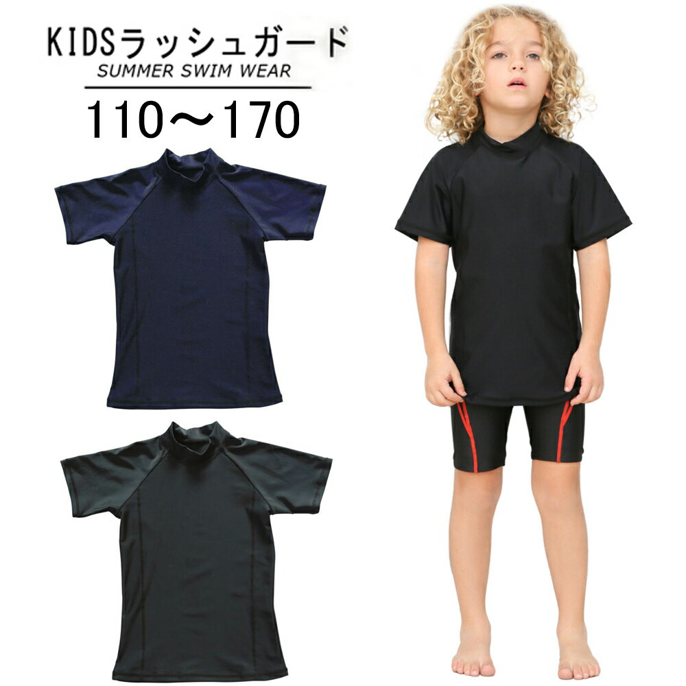 単色スクール水着 半袖ラッシュガード単品 男の子 女の子 子供 ジュニア 110cm 120cm 130cm 140cm 150cm 160cm 170cm 無地 UPF50+ ネコポスは送料無料