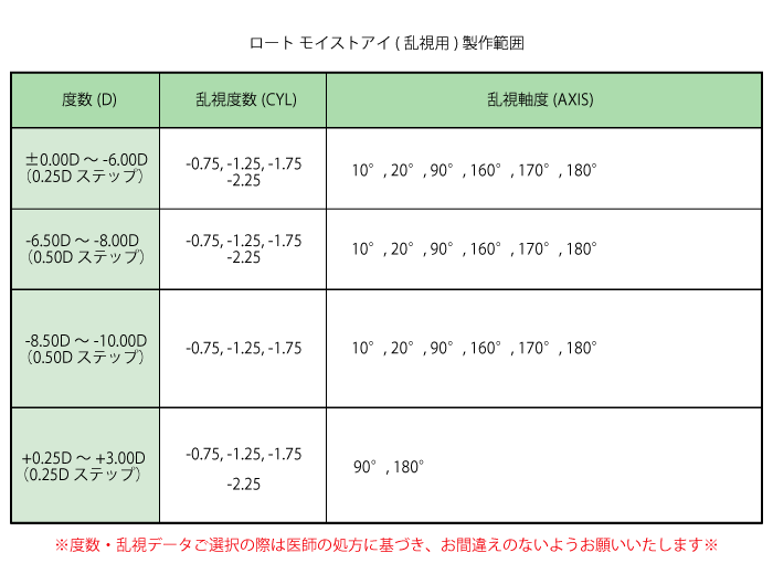 商品詳細 含水率 48% 中心厚 0.11mm(-3.00D) BC 8.7mm 直径 14.5mm PWR(度数) +0.25〜+3.00(+0.25ステップ) (+0.25, +0.50, +0.75, +1.00, +1.25, +1.50, +1.75, +2.00, +2.25, +2.50, +2.75, +3.00) CYL(乱視度数) -0.75/-1.25/-1.75/-2.25 AX(乱視軸度) 90°/180° 包装 1箱6枚入り 区分/使用目的 高度管理医療機器/視力補正用レンズ(終日装用、再使用禁止) 医療用具承認番号 22200BZX00714A02 製造国 アメリカ合衆国、またはイギリス 製造販売元 クーパービジョン・ジャパン株式会社 発売元 ロート製薬株式会社 広告文責 株式会社ワッツTEL:042-512-7228 ※コンタクトレンズを安全にお使いいただく為、 また、眼の健康の為にも、必ず定期的に医師の検査をお受けください。
