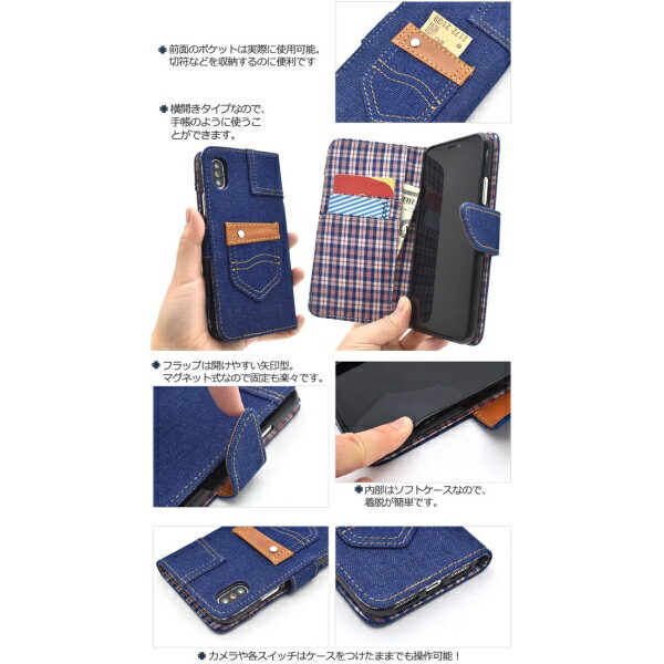 [アイフォンテン用] iPhone XS/X用 チェックデニムデザインケースポーチ(ジーンズデザイン) [キャンセル・変更・返品不可]